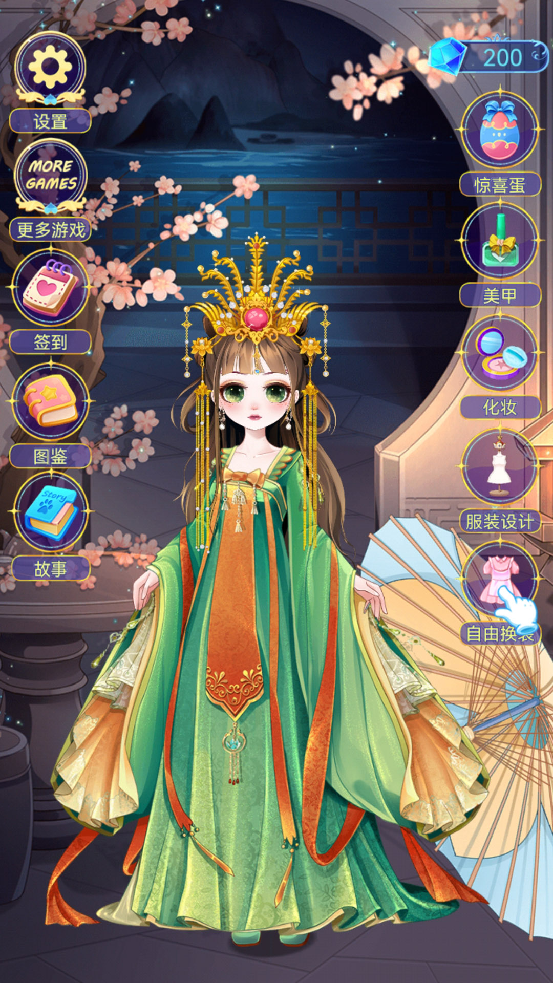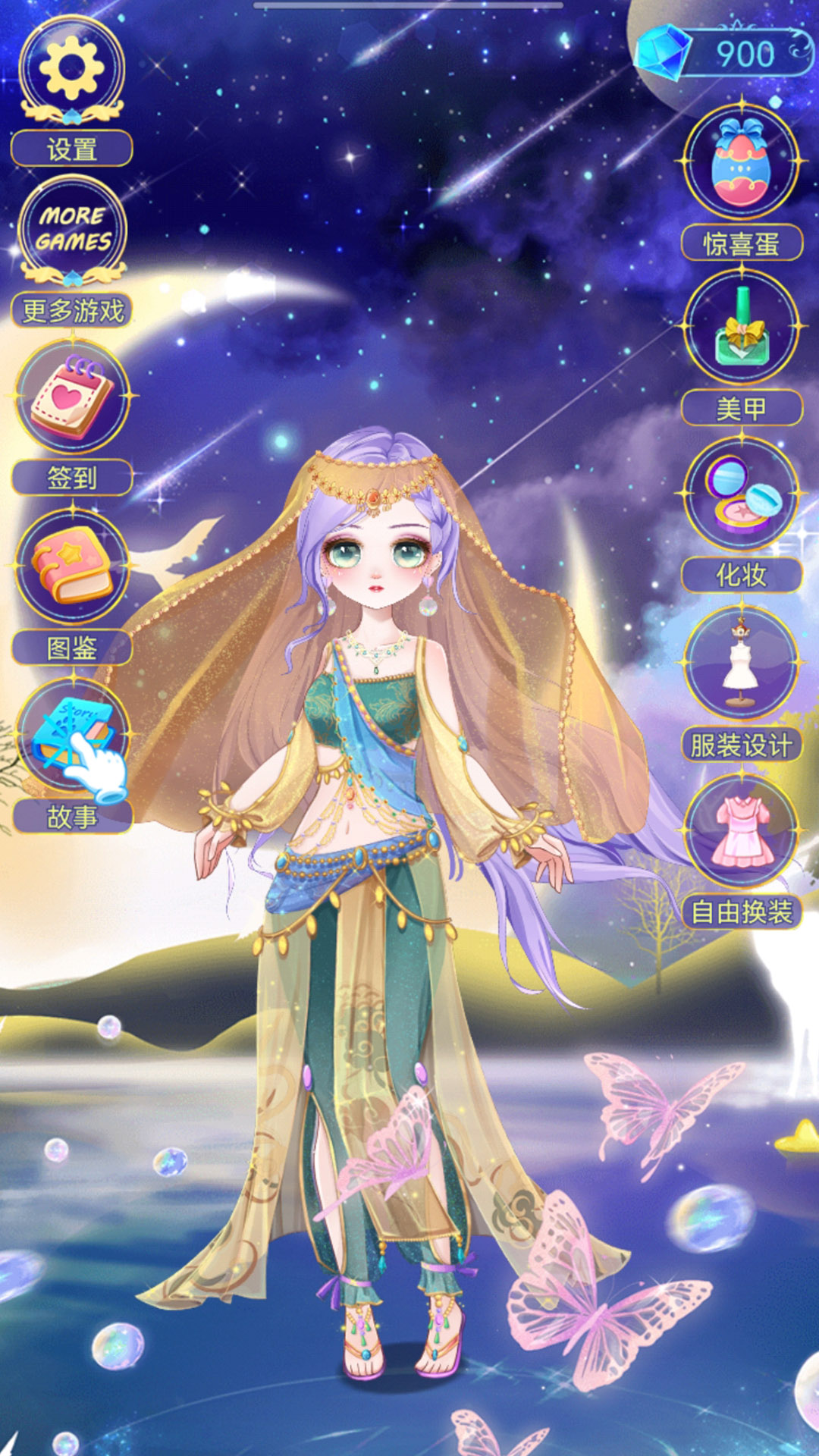 游戏主要分为自由换装、主题关卡、养成成长三大模块。自由换装模式下,玩家可随意搭配已解锁的服装、发型、妆容与配饰,从上衣、下装、连衣裙到外套、鞋袜、首饰,每个部位都有多种款式可选。主题关卡则有明确的搭配要求,比如冰雪晚宴、冬日探险、魔法舞会等主题,需在限定服饰中选择合适造型,完成后会根据搭配契合度、色彩协调度评分,获取金币、钻石或稀有服饰奖励。养成方面,通过完成关卡、领取日常福利可提升公主的魅力值与时尚等级,等级提升后能解锁更多高级服装、专属妆容,还能开启服装设计、美甲等深度玩法。操作上以点击、滑动为主,选择服饰、调整细节都很流畅,切换界面响应快,长时间玩也不会觉得卡顿。